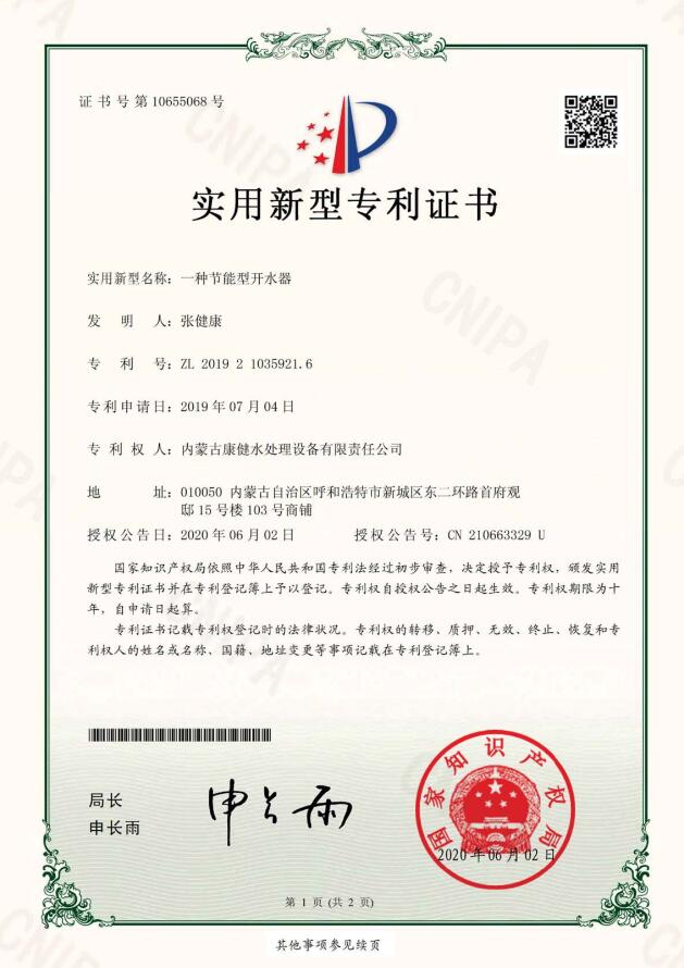 - 內(nèi)蒙古康健水處理設(shè)備有限責(zé)任公司是專業(yè)生產(chǎn)制造水處理設(shè)備、飲料設(shè)備、奶設(shè)備、殺菌設(shè)備、灌裝設(shè)備五大系列90余種配套產(chǎn)品。在反滲透、超濾、納濾、EDI模塊、等膜分離領(lǐng)域有著雄厚的技術(shù)實(shí)力,同時(shí)在水廠設(shè)計(jì)、中水回用、污水處理、分質(zhì)供水、無負(fù)壓變頻供水、鍋爐軟化水設(shè)備等領(lǐng)域有完善的技術(shù)團(tuán)隊(duì)和營銷網(wǎng)絡(luò)。公司坐落在遼闊大草原上美麗的首府——呼和浩特,是內(nèi)蒙古自治區(qū)唯一一家具有自主生產(chǎn)能力的企業(yè)。 “上善若水,水利萬物而不爭”康健水工自成立以來,始終堅(jiān)持“改善水質(zhì)、造福人類、服務(wù)社會、產(chǎn)業(yè)報(bào)國”的企業(yè)信條,以致力于開創(chuàng)人類綠色健康生活為己任,秉承“關(guān)愛生命、責(zé)任至上”的企業(yè)宗旨,成就了享譽(yù)四方的國內(nèi)知名水處理企業(yè)。 水是生命的源泉、工業(yè)的血液、城市的命脈。水是不可替代的寶貴資源。節(jié)約用水,關(guān)注點(diǎn)滴 為節(jié)約水資源貢獻(xiàn)一份力量, 健康飲水,利在當(dāng)代,功在千秋! 只有在這里,才能領(lǐng)會水的精髓;只有在這里,才...